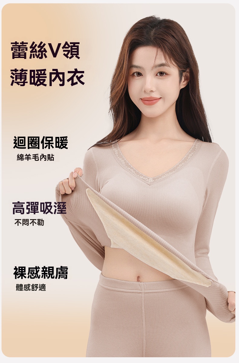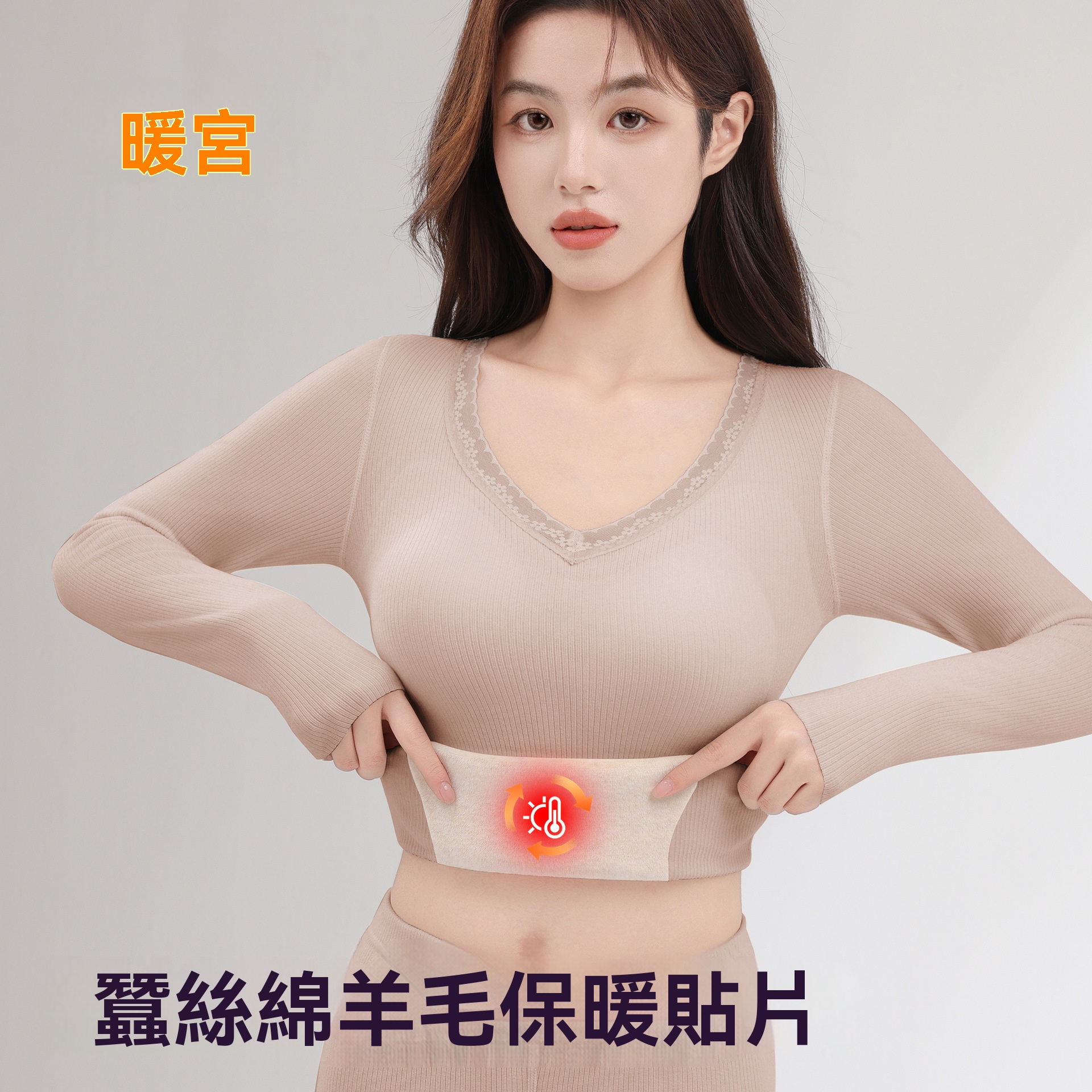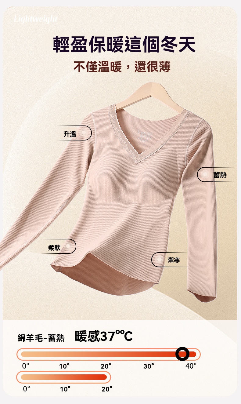 秋冬新款德絨保暖內衣女帶胸墊一體式加絨發熱磨毛打底秋衣