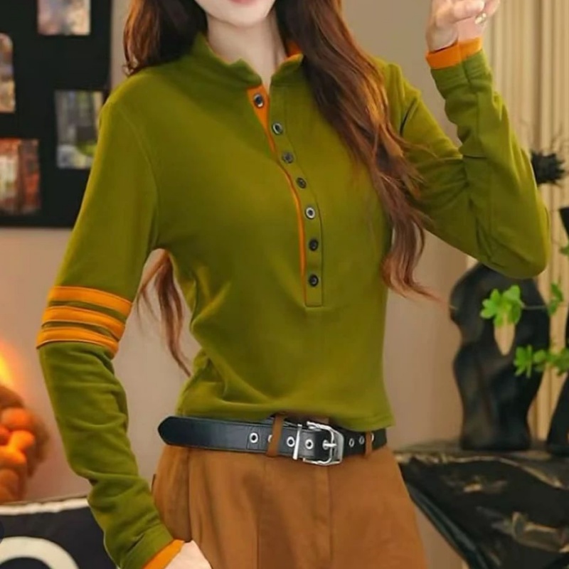 2025秋冬新款氣質顯瘦半高領雙面絨保暖撞色長袖,百搭時尚,保暖舒適,氣質減齡!