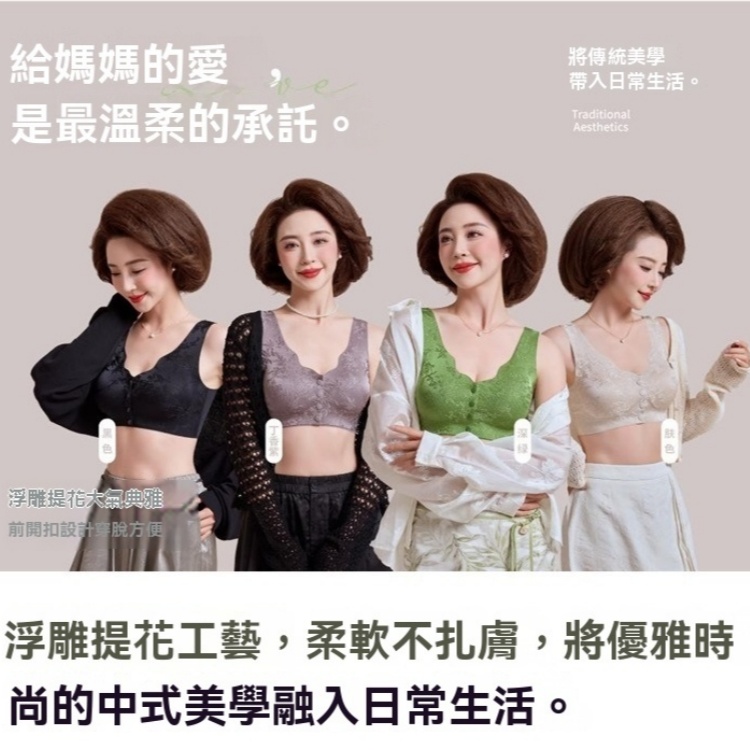 前開扣設計超貼心 一扣即開超便利 透氣網孔胸墊 不挑年齡身材 無痕聚攏 舒適貼身