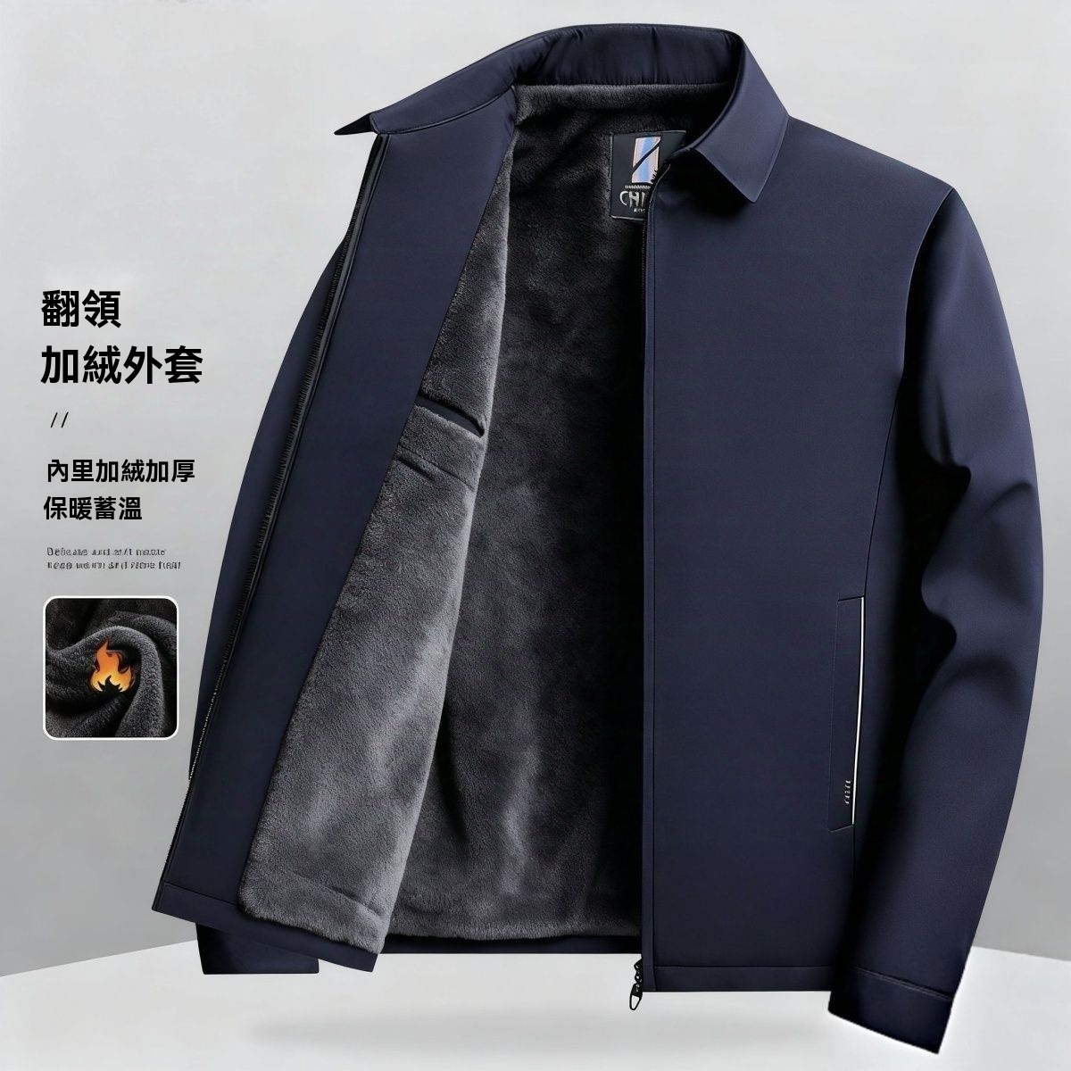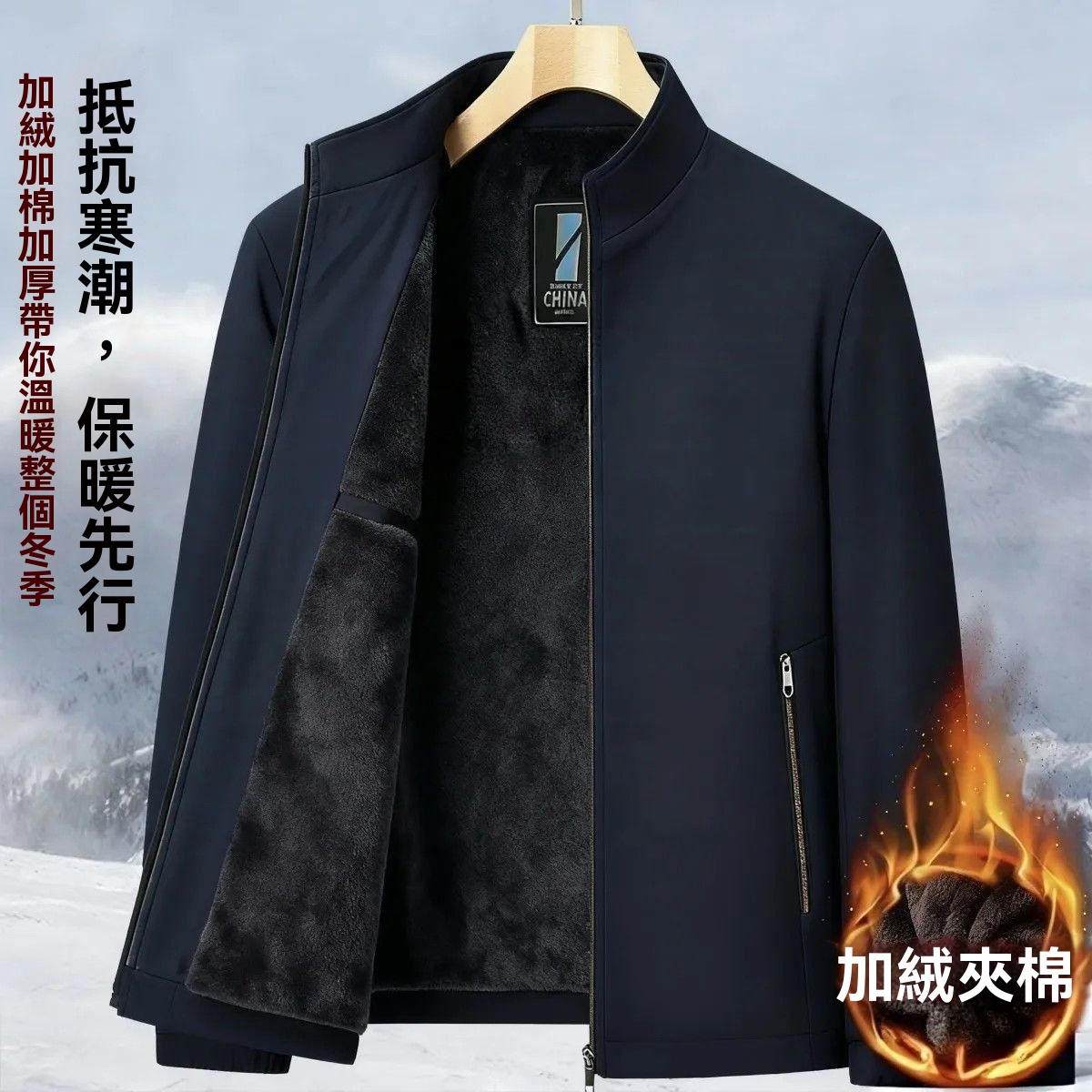 黑金2025秋冬裝男士立領加絨夾克中老年男士商務爸爸裝外套保暖爺爺棉服