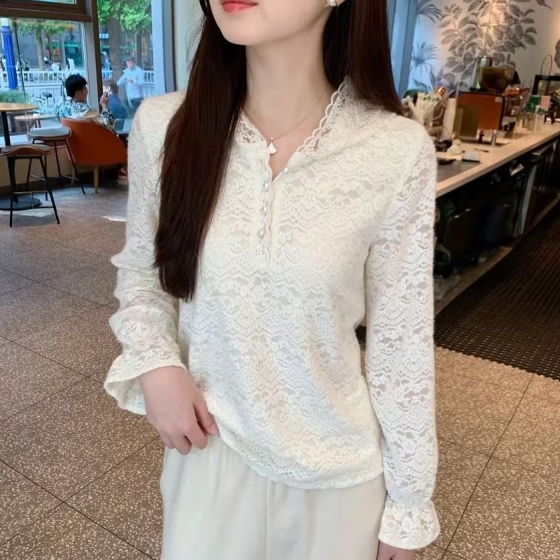 高級感拼接蕾絲花邊連帽針織衫2025新款時尚休閑疊穿加絨小帽衫