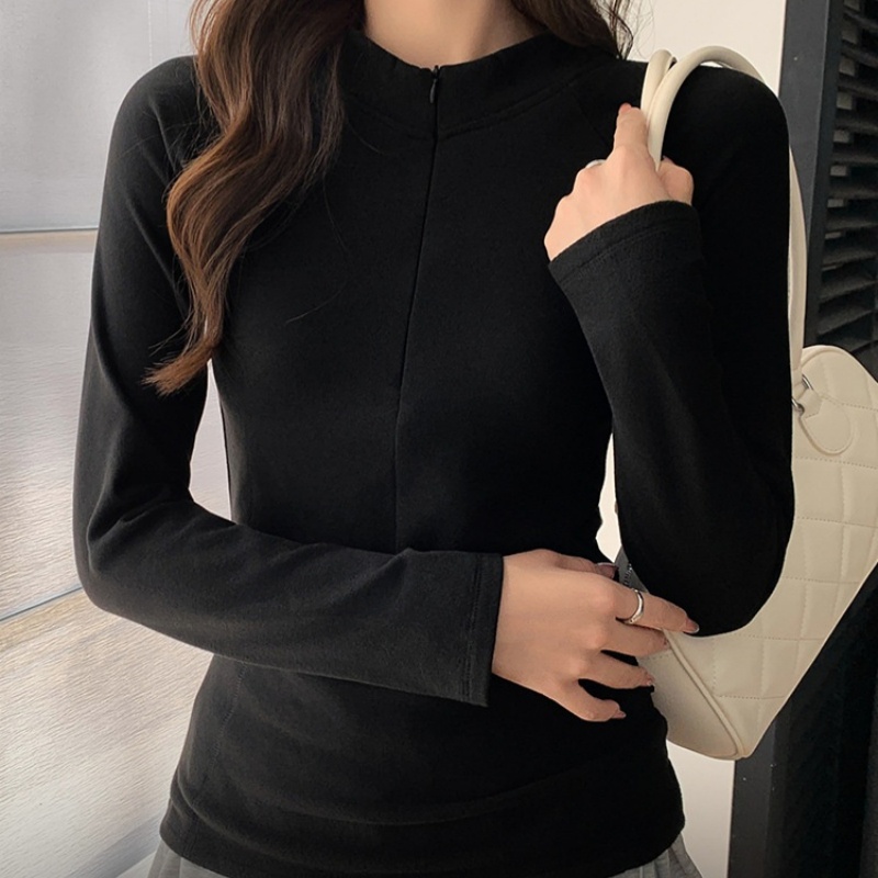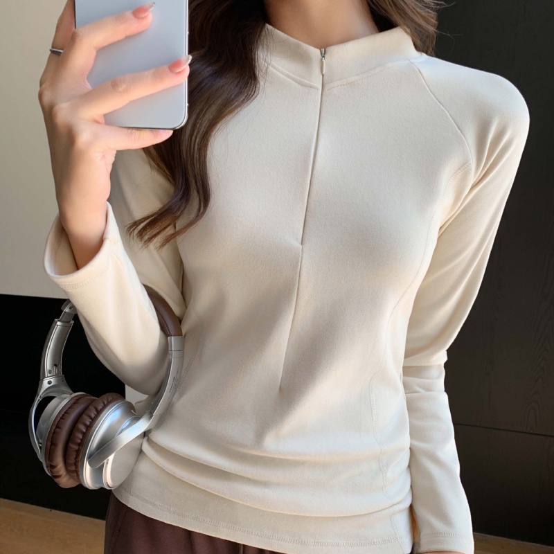 秋冬顯瘦德絨半拉鏈打底衫 半拉鏈立領顯精緻 修身版型勾腰線 德絨暖而不臃腫 單穿疊穿都高級